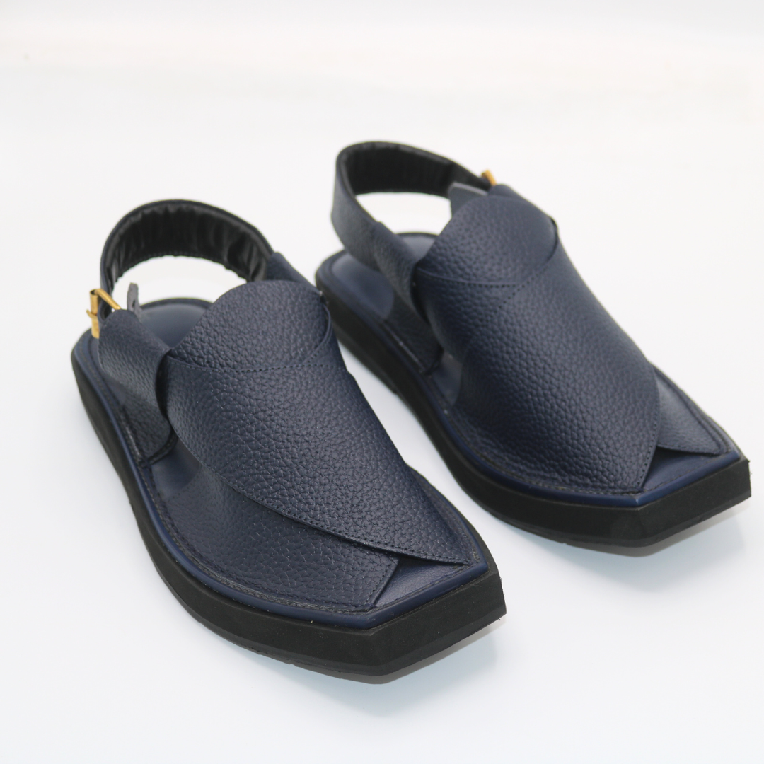 Add a touch of bold sophistication to your look with the Kaptaan Blue Dotted Peshawari Chappal—a flawless mix of tradition and modern style. Perfect for festive occasions, casual gatherings, or daily wear, this chappal delivers unmatched comfort and timeless appeal.